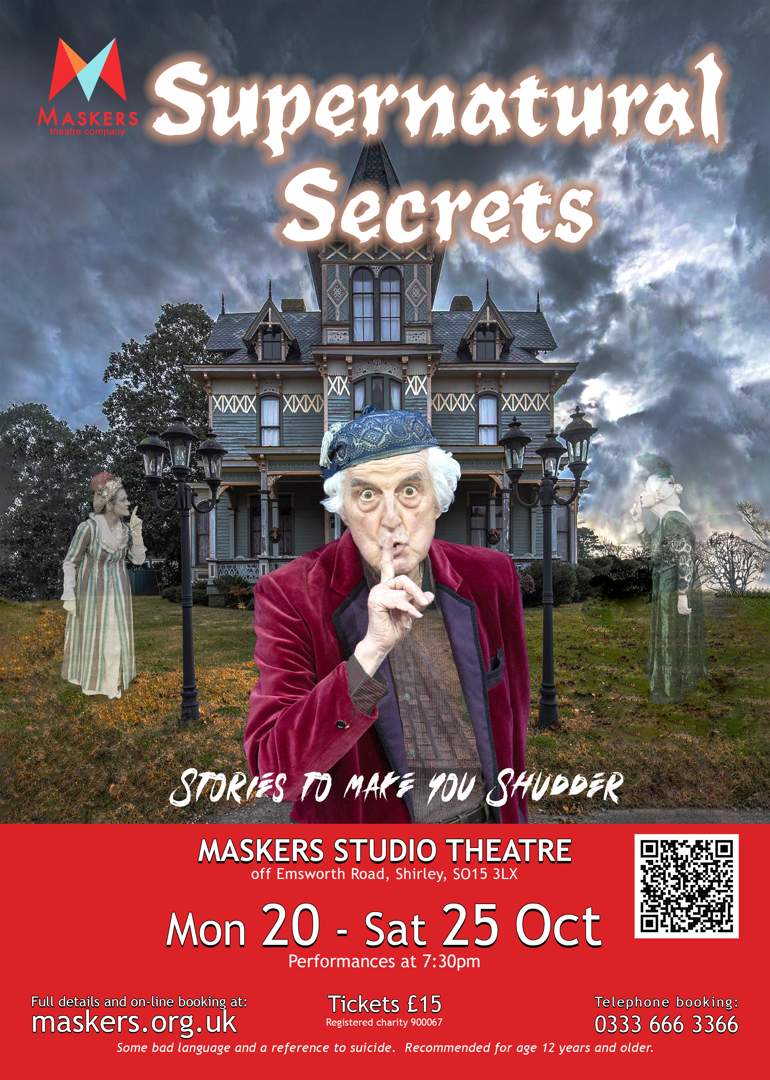 Maria has been a member of Maskers for many years. In that time, she has played a wide variety of roles including Goneril in King Lear and Mistress Meg Page in The Merry Wives of Windsor twice! The first production was open air theatre at Mottisfont Abbey and the second in the studio. She was last seen in Murder in the Studio in May 2024. This is the first time she has played a ghost with Maskers and is looking forward to a creepy evening.