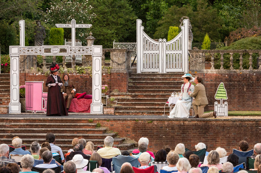Performing Oscar Wilde’s witty classic upon an outdoor mezzanine, formed as part of the beautiful landscaping, the team of ten didn’t fail to disappoint and the audience’s endless titters could be heard echoing against the Jacobean style manor house.