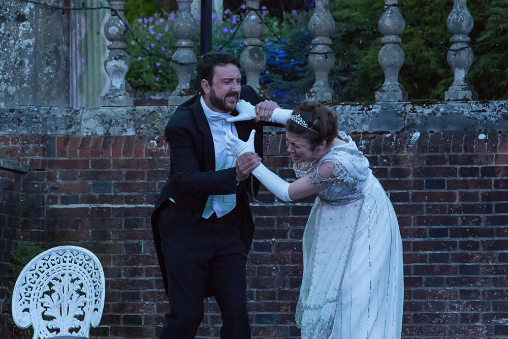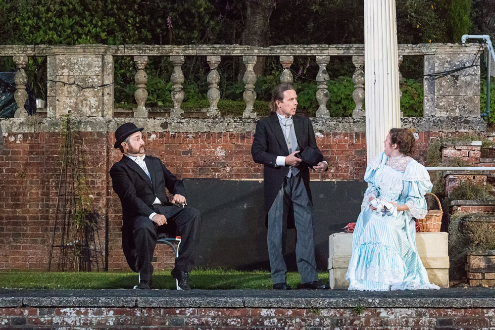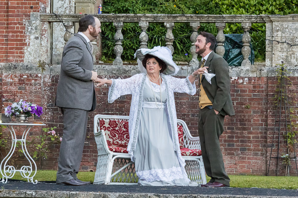 The direction and the production as a whole made brilliant use of the sumptuous surroundings of Hamptworth Lodge. When the property changed hands a few years ago, it was uncertain whether the archery lawn would still be available for shows. It is a very great credit to the current owners that it is, as this type of 'class analysis' works extremely well in the complex surroundings. It is not easy adapting stage shows to the open air, particularly regarding sound and lighting and the extremely long (and very public) entrances, but this show really made full use of the space.
