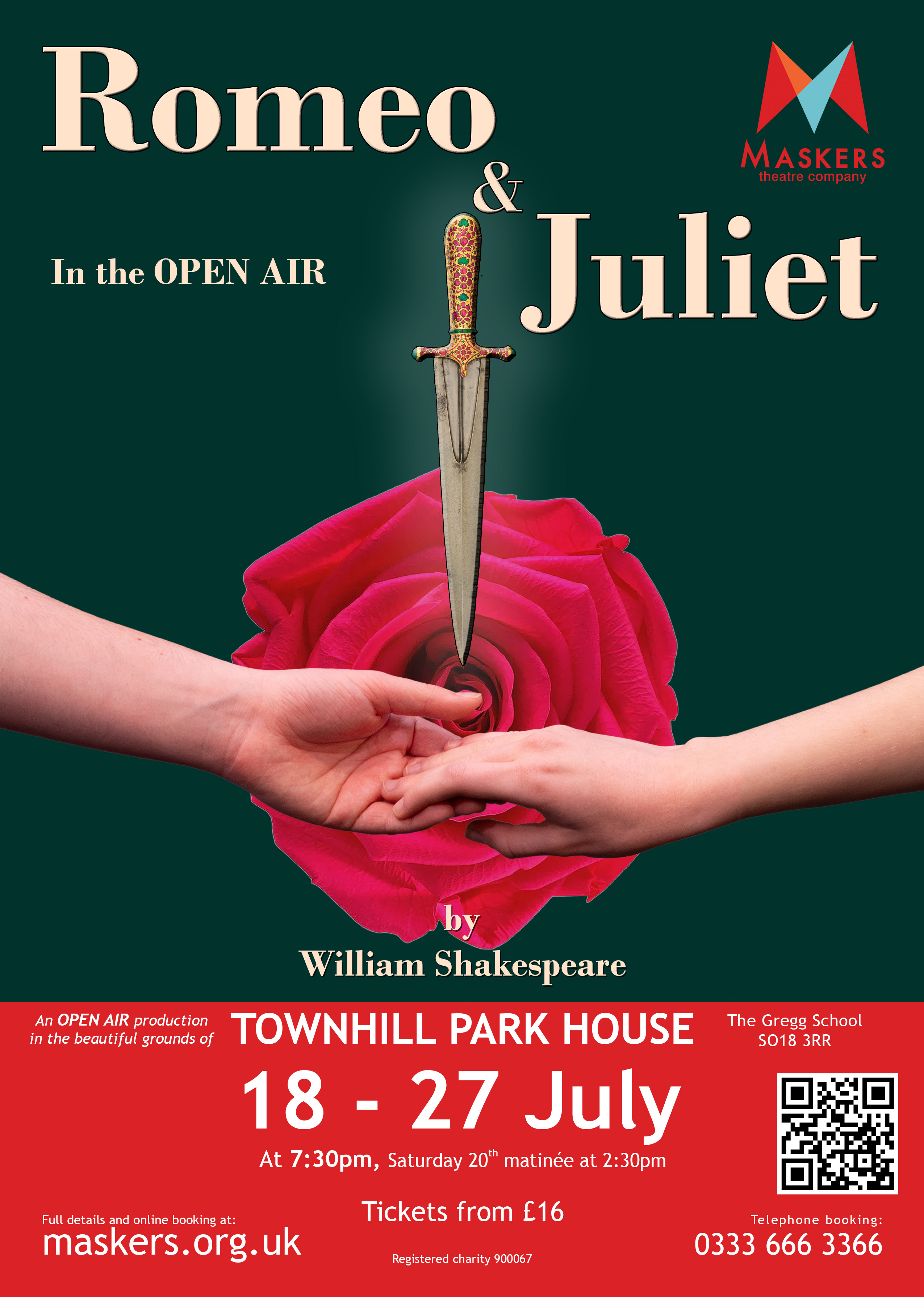 Now in their sixth decade, Maskers Theatre Company certainly know a thing or two about open-air theatre and the ever-popular Romeo and Juliet playing at The Gregg School, Townhill Park until 27 July is perfect for the group’s many talents. This is the Maskers’ fifth year at Townhill Park, having previously spent many happy summers at Mottisfont Abbey and Hamptworth Park.
