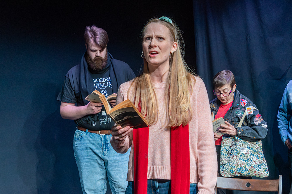 One of the most interesting aspects of this play is the requirement for actors to perform dual roles, portraying key scenes from Macbeth while moving swiftly between these and their characters as members of the Shellsfoot Thespians. Director Jill Desborough’s background as an English teacher, along with her experience teaching Shakespeare, clearly serves the production well.